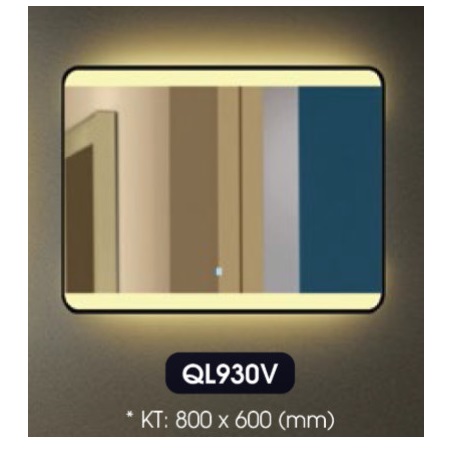 Mẫu gương soi phòng tắm đèn Led QB QL930V được thiết kế bo viền màu đen sang trọng. Đèn led chạy ngang hai đường trên dưới của gương. Bạn có thể điều chỉnh độ sáng của đèn theo mong muốn với nút cảm biến trên mặt gương.
