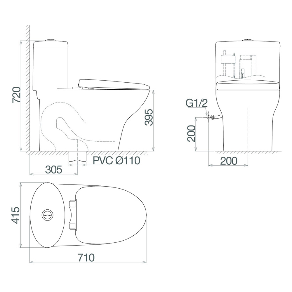 Bản vẽ kỹ thuật bồn cầu một khối Viglacera V37M nắp êm