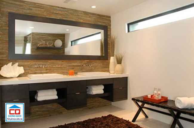 Nếu bạn sở hữu một không gian phòng tắm có diện tích rộng và thoáng thì hãy bạn hoàn toàn có thể sáng tạo gương theo những ý tưởng của bản thân mình. Ví dụ bạn có thể sử dụng loại gương thật phong cách và ấn tượng cho góc của căn phòng hoặc thêm vào phần khung gương những chi tiết mới lạ. Bạn cũng có thẻ tạo nền cho gương bằng những chất liệu dễ kiếm như cành cây khô hoặc giấy dán tường nhiều màu sắc.