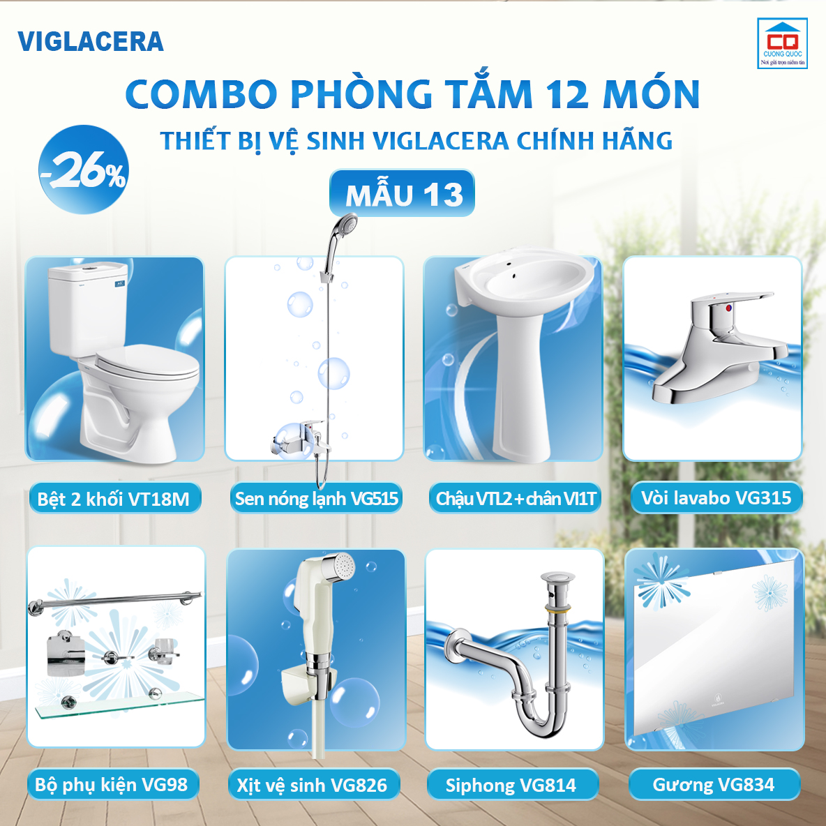 Công ty Cổ phần Thương mại và dịch vụ Cường Quốc là tổng đại lý câp 1 Viglacera tại Hà Nội chuyên cung cấp các sản phẩm vật liệu xây dựng đồng bộ: Sứ vệ sinh, sen vòi, gạch ốp lát, kính xây dựng, kính tiết kiệm năng lượng mang thương hiệu Viglacera - thương hiệu của người Việt Nam đã và đang được người tiêu dùng trong và ngoài nước tin tưởng lựa chọn.