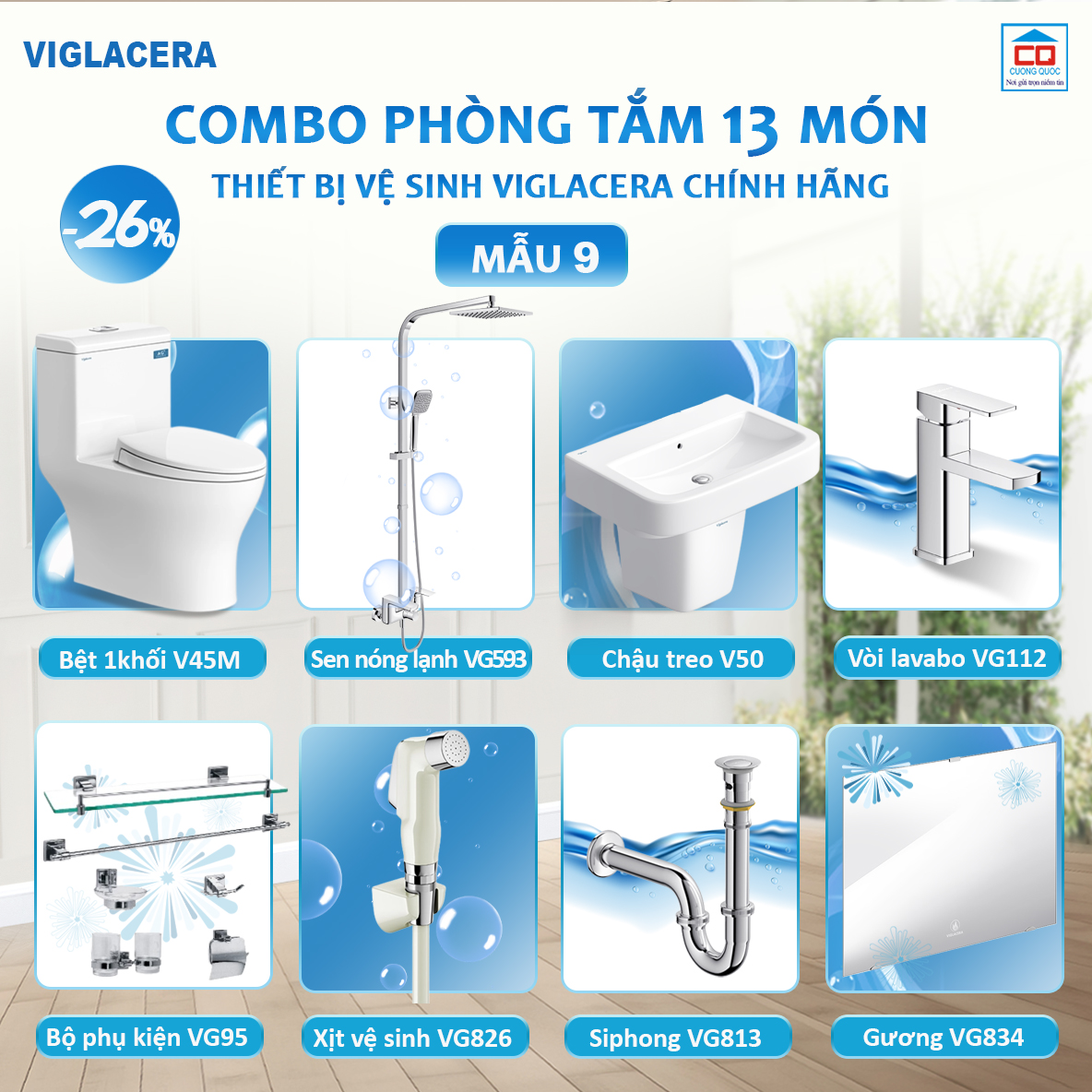 Công ty Cổ phần Thương mại và dịch vụ Cường Quốc là tổng đại lý câp 1 Viglacera tại Hà Nội chuyên cung cấp các sản phẩm vật liệu xây dựng đồng bộ: Sứ vệ sinh, sen vòi, gạch ốp lát, kính xây dựng, kính tiết kiệm năng lượng mang thương hiệu Viglacera - thương hiệu của người Việt Nam đã và đang được người tiêu dùng trong và ngoài nước tin tưởng lựa chọn.