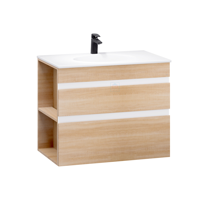 Một ưu điểm nổi bật của bộ tủ chậu này chính là thiết kế thông minh với khoang chứa rộng rãi. Được thiết kế như một giải pháp lưu trữ sáng tạo, tối ưu hóa triệt để không gian phòng tắm. Bộ sản phẩm thiết kế gây ấn tượng với hệ thống ngăn kéo đôi rộng rãi, cho phép sắp xếp gọn gàng từ khăn tắm đến các loại mỹ phẩm kích thước lớn. Điểm nhấn độc đáo nằm ở các hốc ngăn mở bên hông, giúp người dùng dễ dàng lấy các vật dụng thường xuyên sử dụng mà không cần mở tủ.