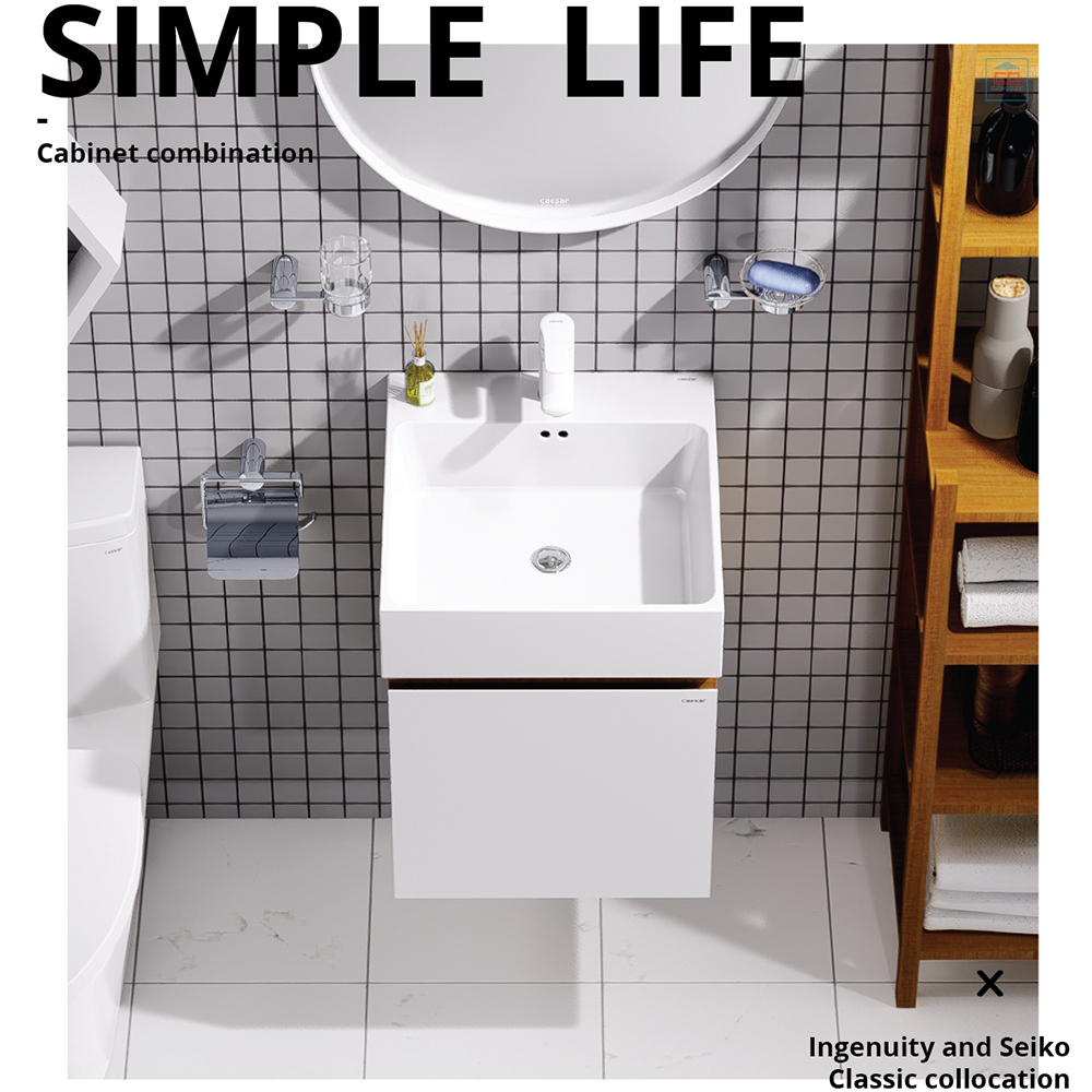 Bộ tủ chậu này sử dụng lavabo được đúc từ sứ nguyên khối cao cấp, mang đến độ bền vượt trội và tính thẩm mỹ cao. Bề mặt chậu tráng men trắng sáng giúp chống bám bẩn tốt, dễ dàng vệ sinh sau thời gian dài sử dụng.