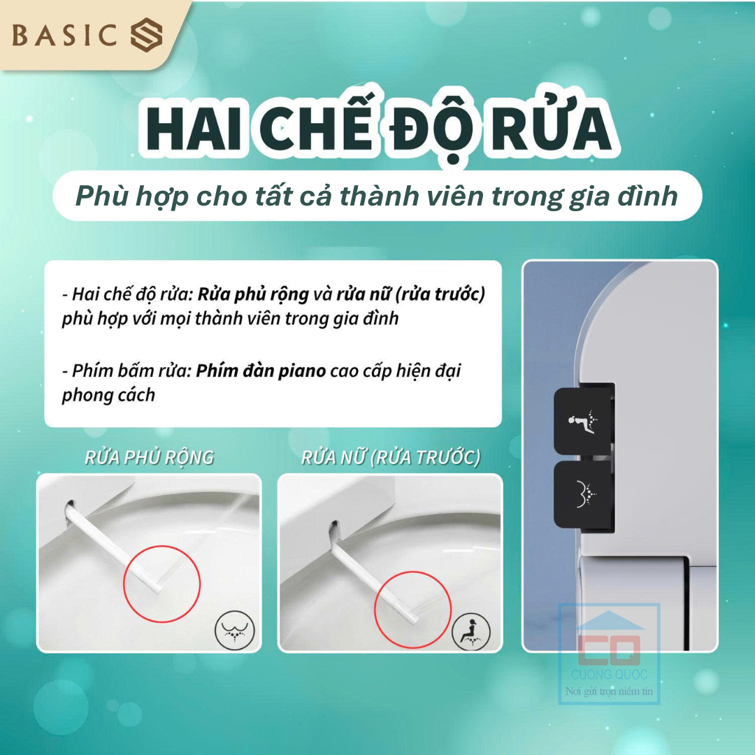Bồn cầu Basic NEO-100 có 2 chế độ rửa đa dạng: Rửa rộng và rửa trước phù hợp cho cả gia đình.