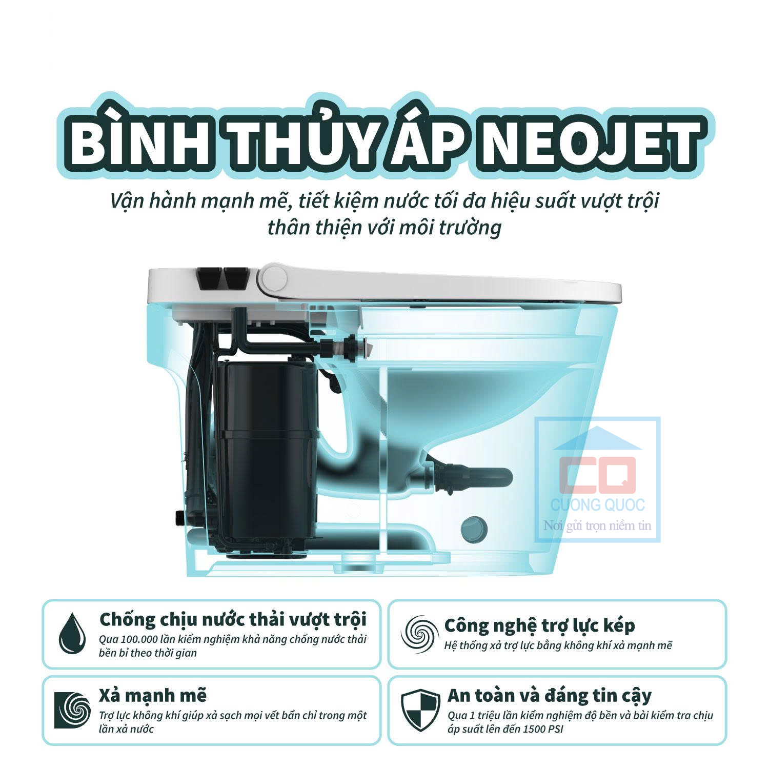 Hệ thống bình thủy áp Neo Jet của bồn cầu chăm sóc NEO-100 vô cùng mạnh mẽ, giúp cuốn trôi chất thải nhanh chóng, đặc biệt là bồn cầu tiết kiệm nước khi sử dụng.