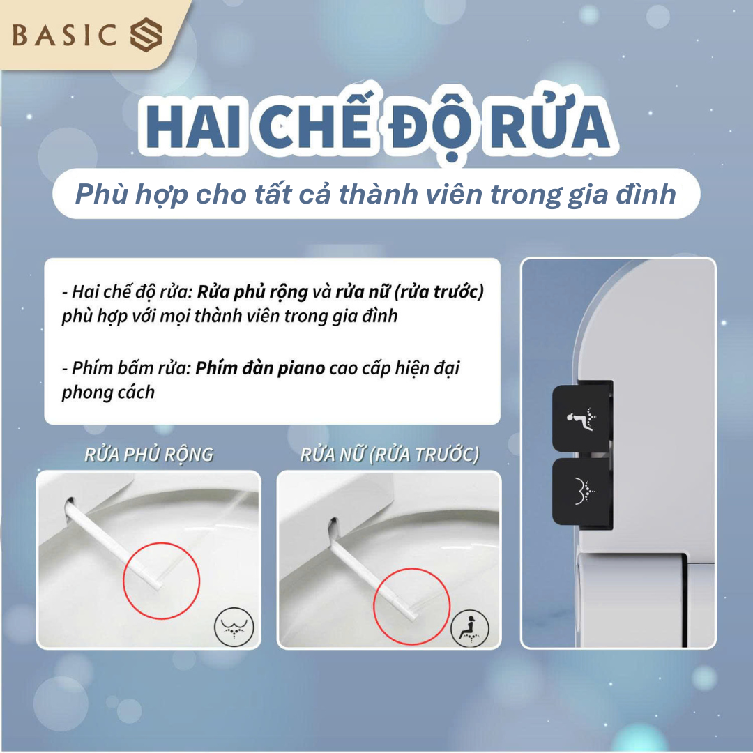 Bồn cầu chăm sóc Basic Neo Jet NEO-100 là dòng thiết bị vệ sinh cao cấp, tích hợp nhiều tính năng thông minh nhằm mang lại sự tiện nghi, thoải mái và an toàn cho người sử dụng. Với thiết kế tinh tế, sang trọng cùng công nghệ xả rửa hiện đại, sản phẩm này đang trở thành xu hướng lựa chọn hàng đầu cho gia đình Việt.