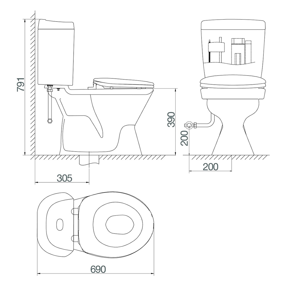 Bản vẽ kỹ thuật bồn cầu Viglacera VI66 két rời nắp êm