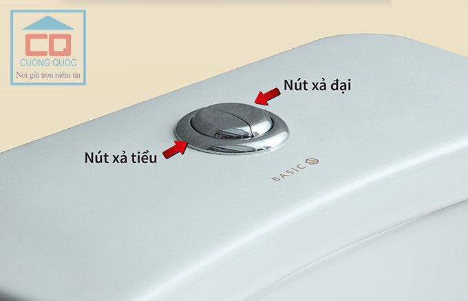 Bồn cầu Basic BS-108 sử dụng 2 nút nhấn xả đại và nút nhấn xả tiểu (3L/6L) giúp tiết kiệm nước khi sử dụng.