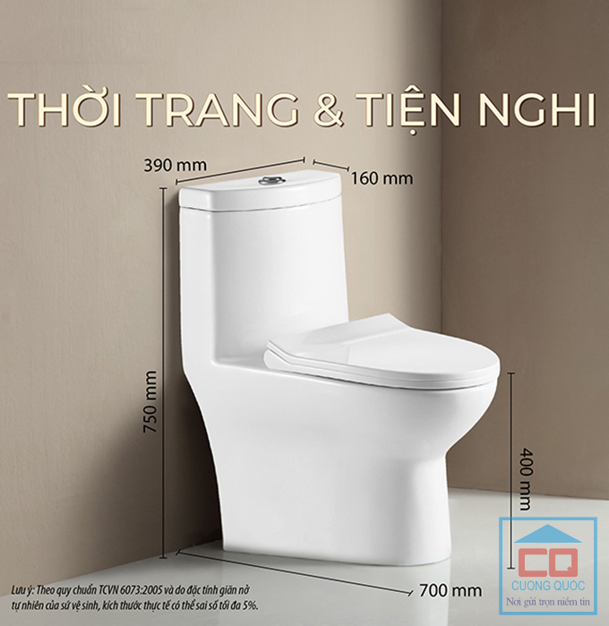 Sản phẩm được thiết kế với kích thước tiêu chuẩn, dễ lắp đặt, tương thích với nhiều loại đường thoát sàn phổ biến tại Việt Nam. Dù là nhà phố, chung cư hay biệt thự, bồn cầu Eco Basic BS-108 đều đáp ứng hoàn hảo.