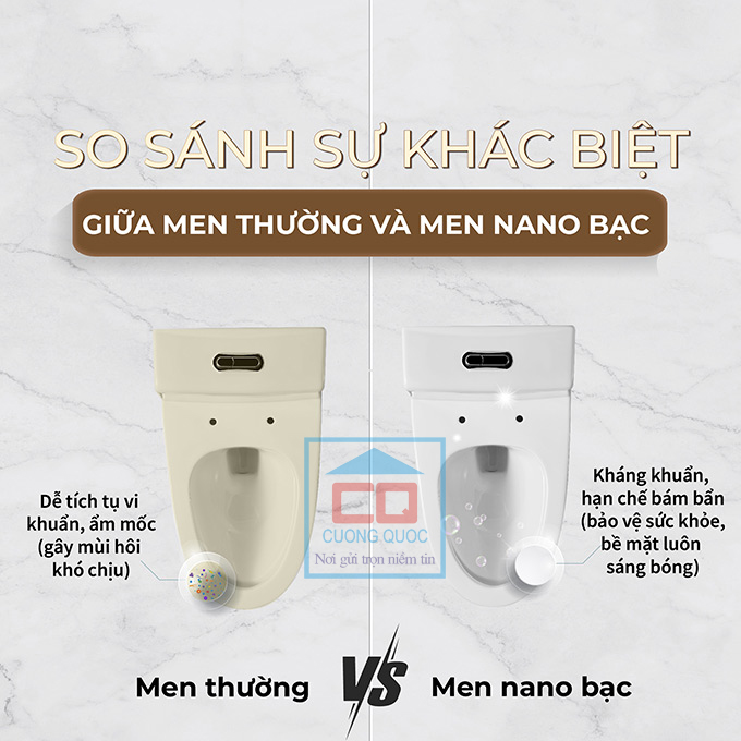 Sản phẩm được làm từ sứ vệ sinh chất lượng cao, phủ lớp men Nano chống bám bẩn, chống ố vàng và dễ lau chùi. Nhờ đó, bồn cầu luôn giữ được vẻ sáng bóng như mới, giảm thiểu thời gian và công sức vệ sinh.