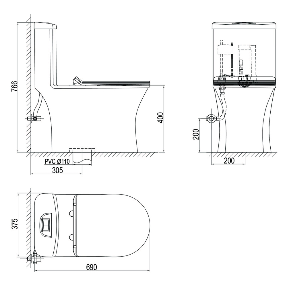 Không chỉ vậy với thiết kế nguyên khối nhỏ gọn, bồn cầu Sanfi S302 có thể lắp đặt cho nhiều diện tích không gian nhà tắm. Thiết kế liền khối còn giúp người dùng vệ sinh dễ dàng hơn, giúp giảm thiểu thời gian và công sức.