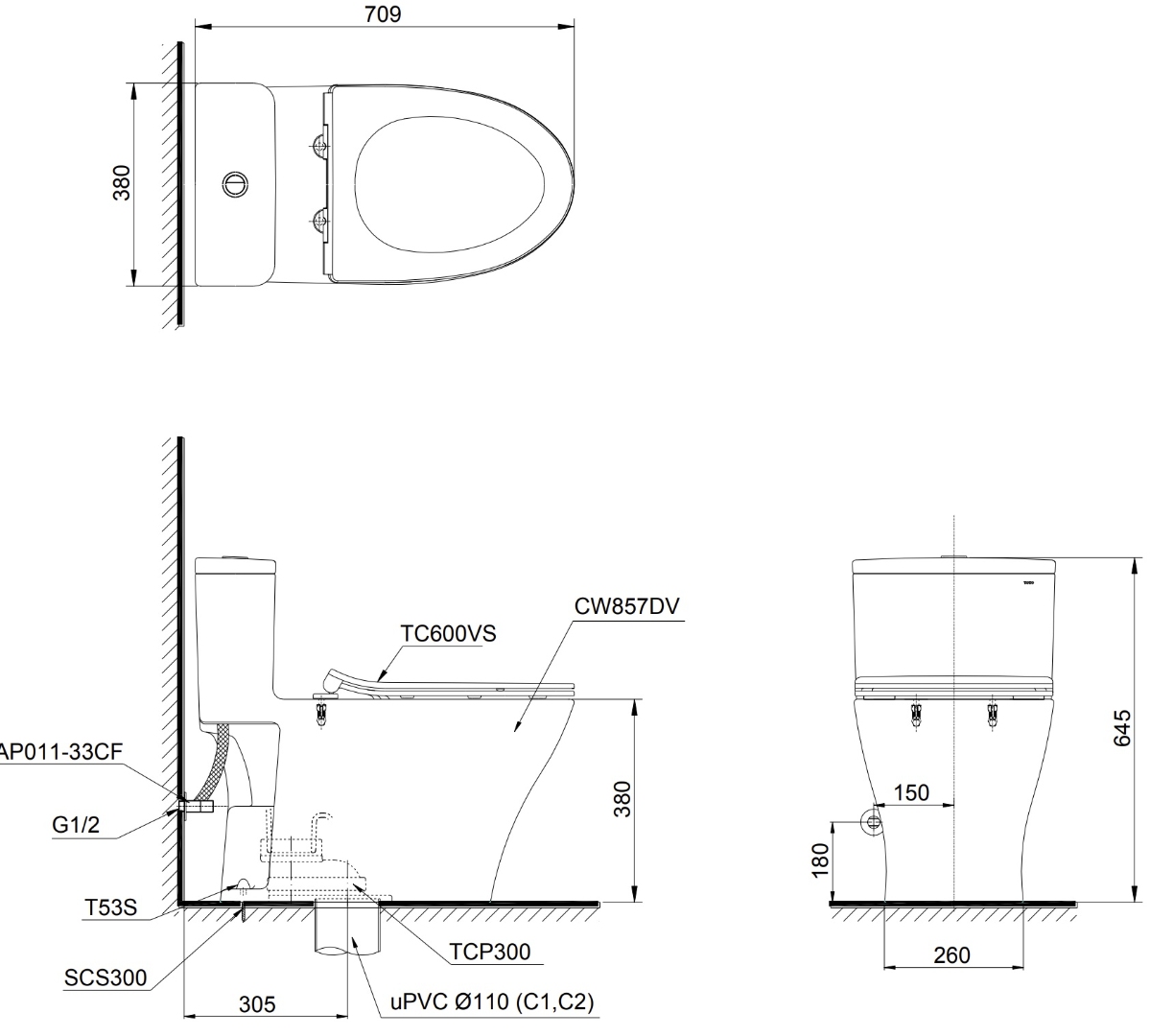 Bản vẽ kỹ thuật bồn cầu TOTO MS857DT2#XW