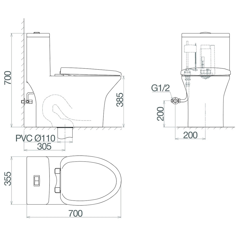 Bản vẽ kỹ thuật bồn cầu két liền Viglacera Fansipan V72 (V700)
