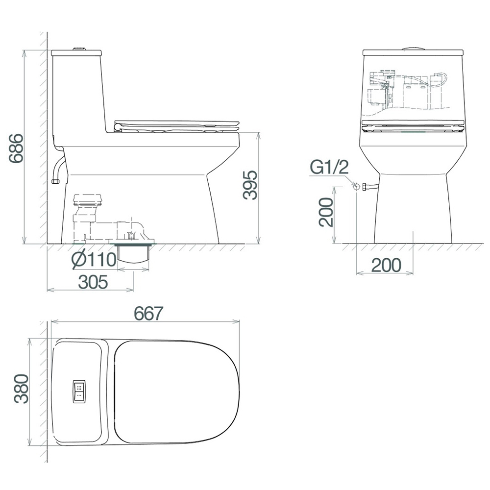 Bản vẽ kỹ thuật của bồn cầu két liền Viglacera V816 nắp êm