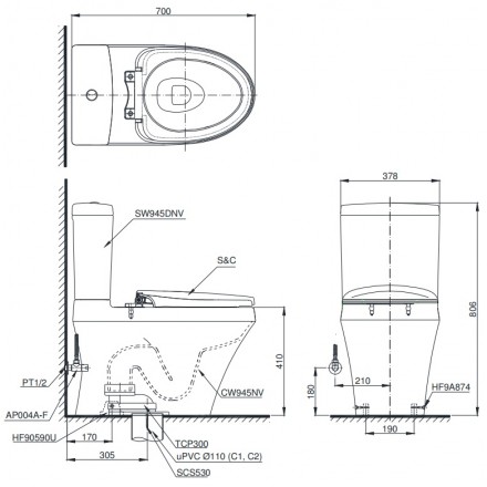 Xuất xứ bồn cầu 2 khối CS945DNW11: