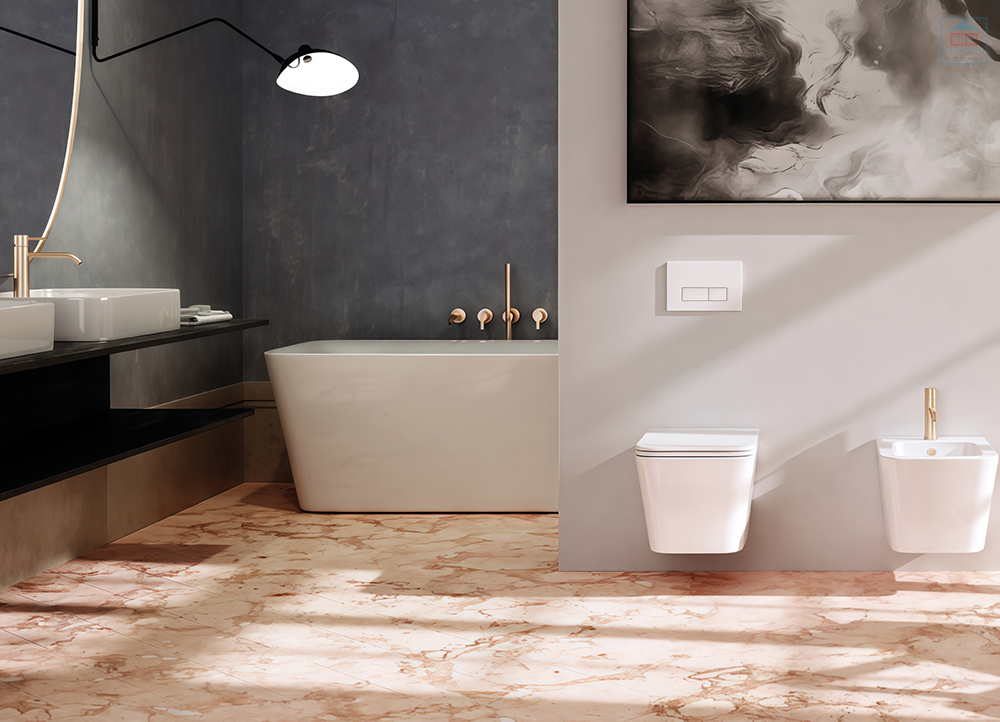 Phối cảnh phòng tắm sử dụng bồn cầu treo tường Basic Cavoli-W