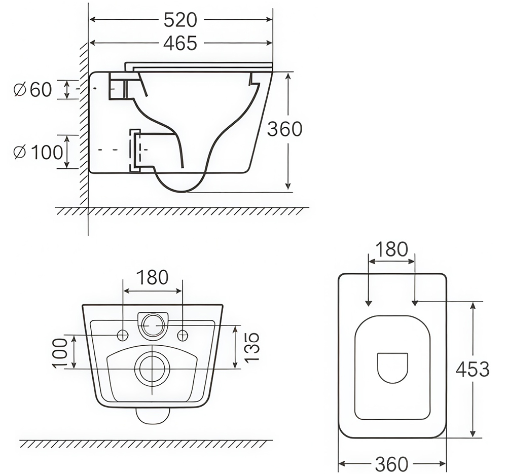 Bản vẽ kỹ thuật bồn cầu treo tường vuông Basic Cavoli-WB