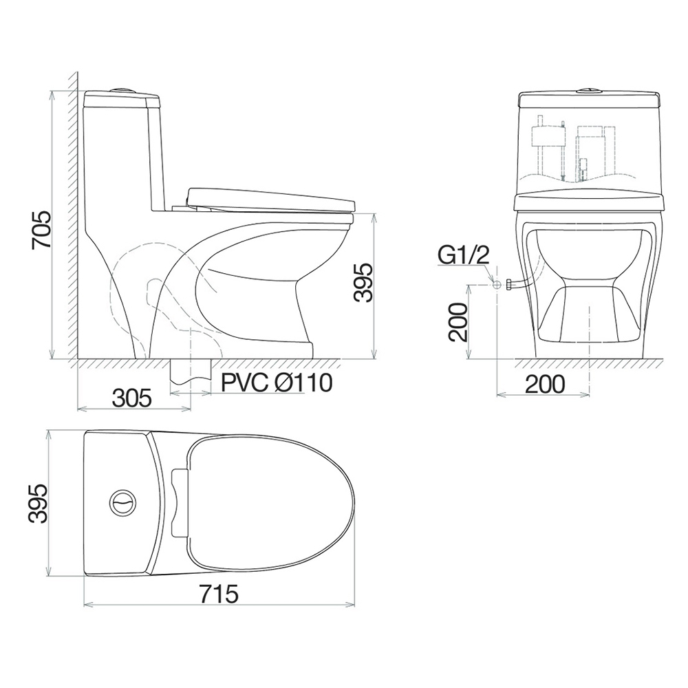 + Dòng sản phẩm: Bồn cầu 1 khối