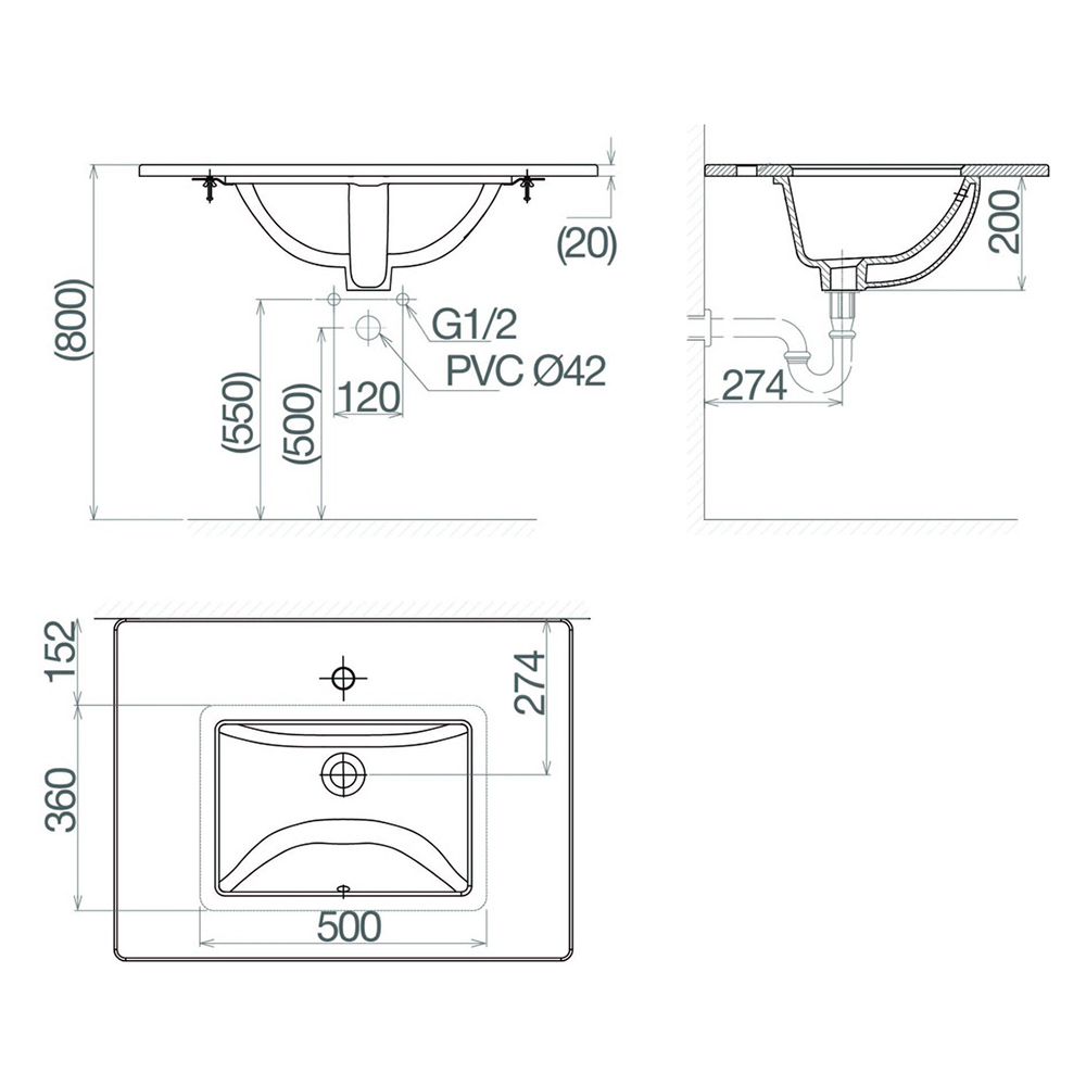 Bản vẽ kỹ thuật chậu rửa lavabo âm bàn Viglacera TS1