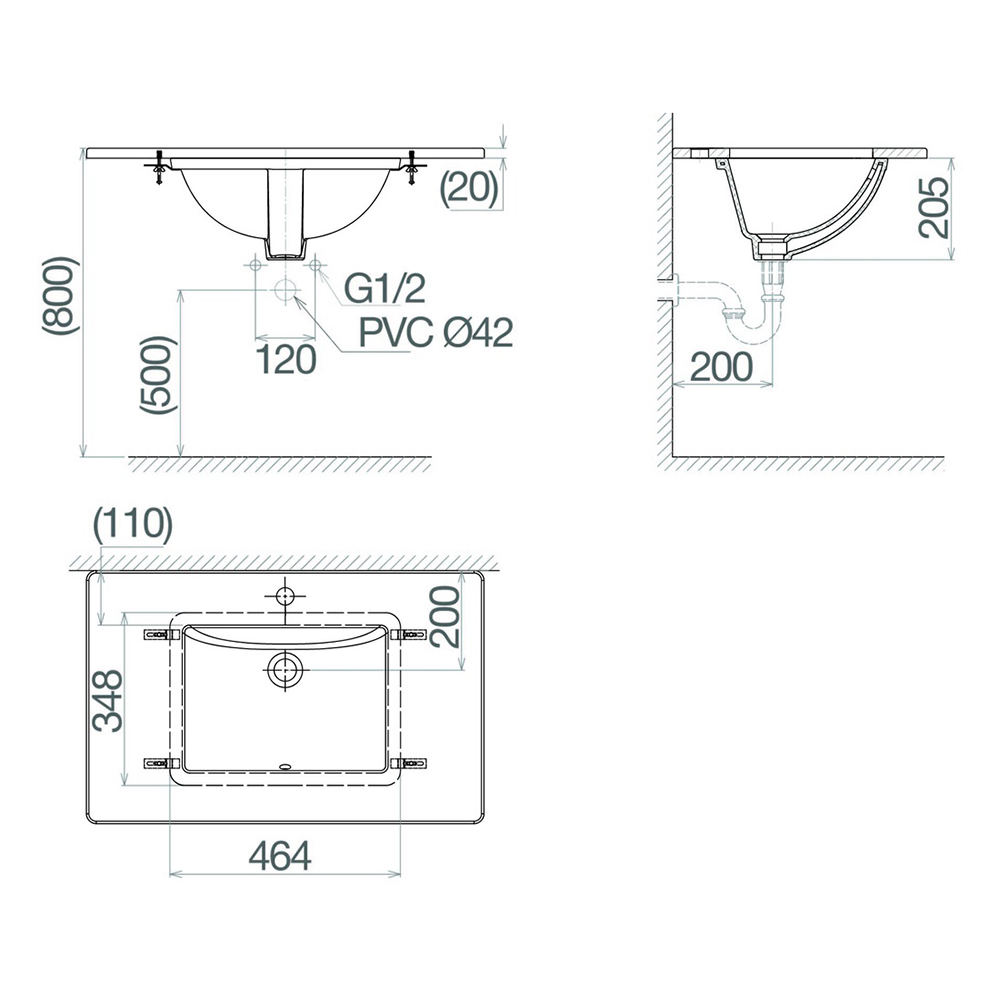 Bản vẽ kỹ thuật chậu rửa lavabo âm bàn Viglacera US1