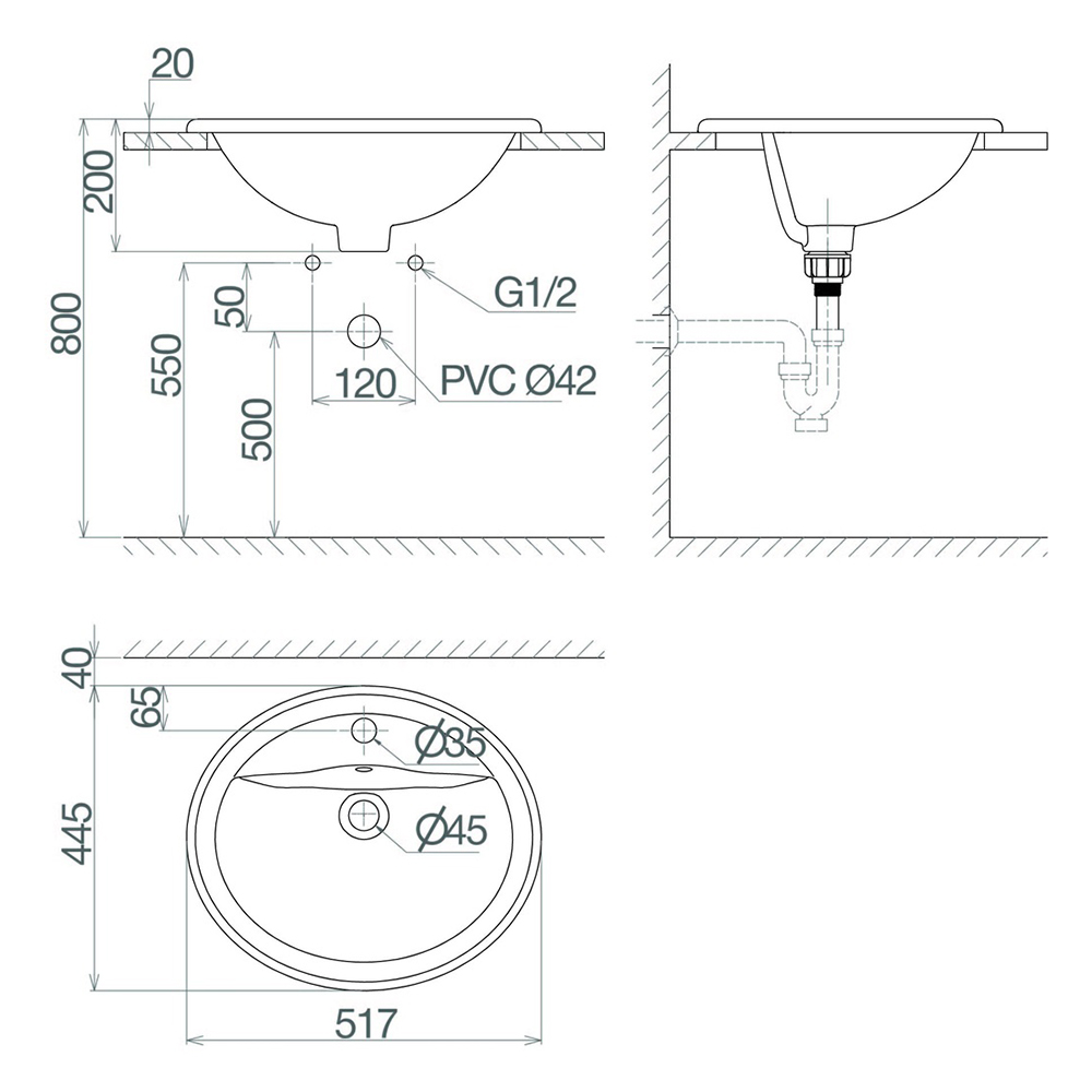 Bản vẽ kỹ thuật chậu rửa lavabo dương vành Viglacera CD1