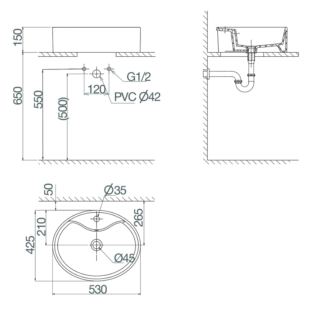Bản vẽ kỹ thuật chậu rửa lavabo dương bàn Viglacera CD19