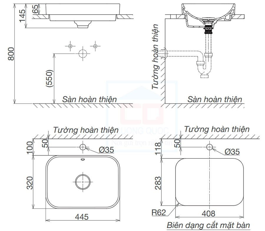 Bản vẽ kỹ thuật chậu rửa lavabo dương bàn Viglacera V27
