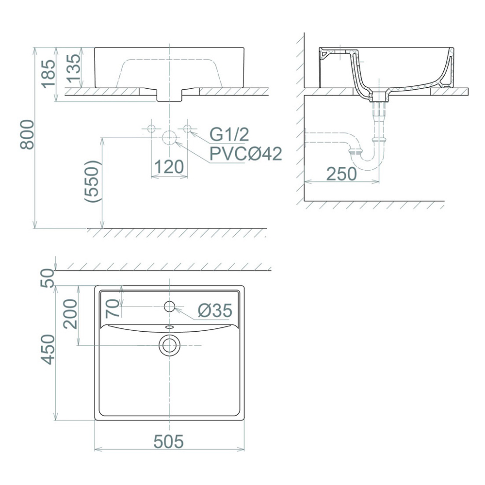 Bản vẽ kỹ thuật chậu rửa lavabo dương bàn Viglacera V42M