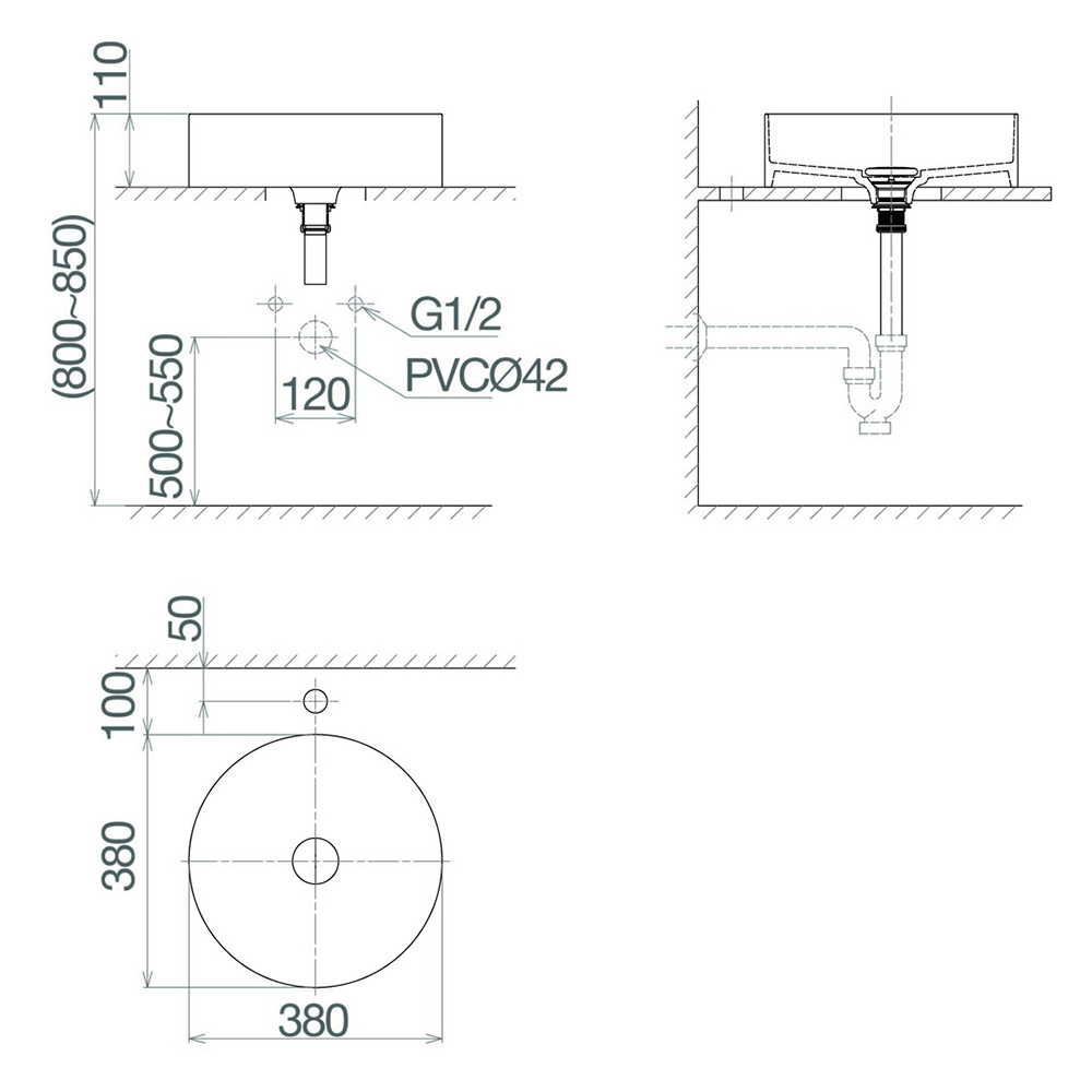 Bản vẽ kỹ thuật chậu rửa mặt Viglacera CM02 vành mỏng