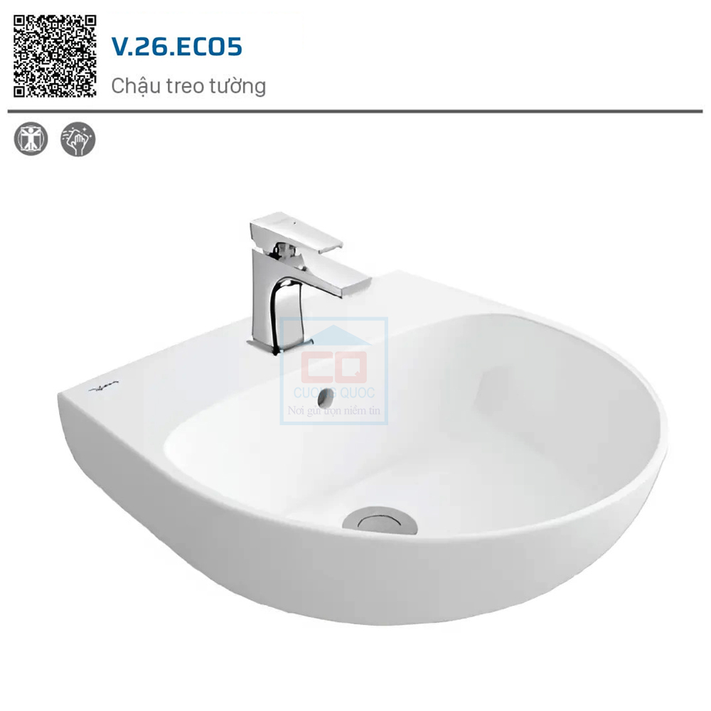 Nằm trong dòng sản phẩm này, lavabo V.26.ECO5 được sản xuất bởi thương hiệu Viglacera với thiết kế đặc biệt để đáp ứng nhu cầu sử dụng trong các không gian phòng tắm hiện đại. Với kiểu dáng treo tường sang trọng và tinh tế, chậu lavabo này mang lại sự kết hợp hoàn hảo giữa tính thẩm mỹ và tính năng sử dụng tiện ích.