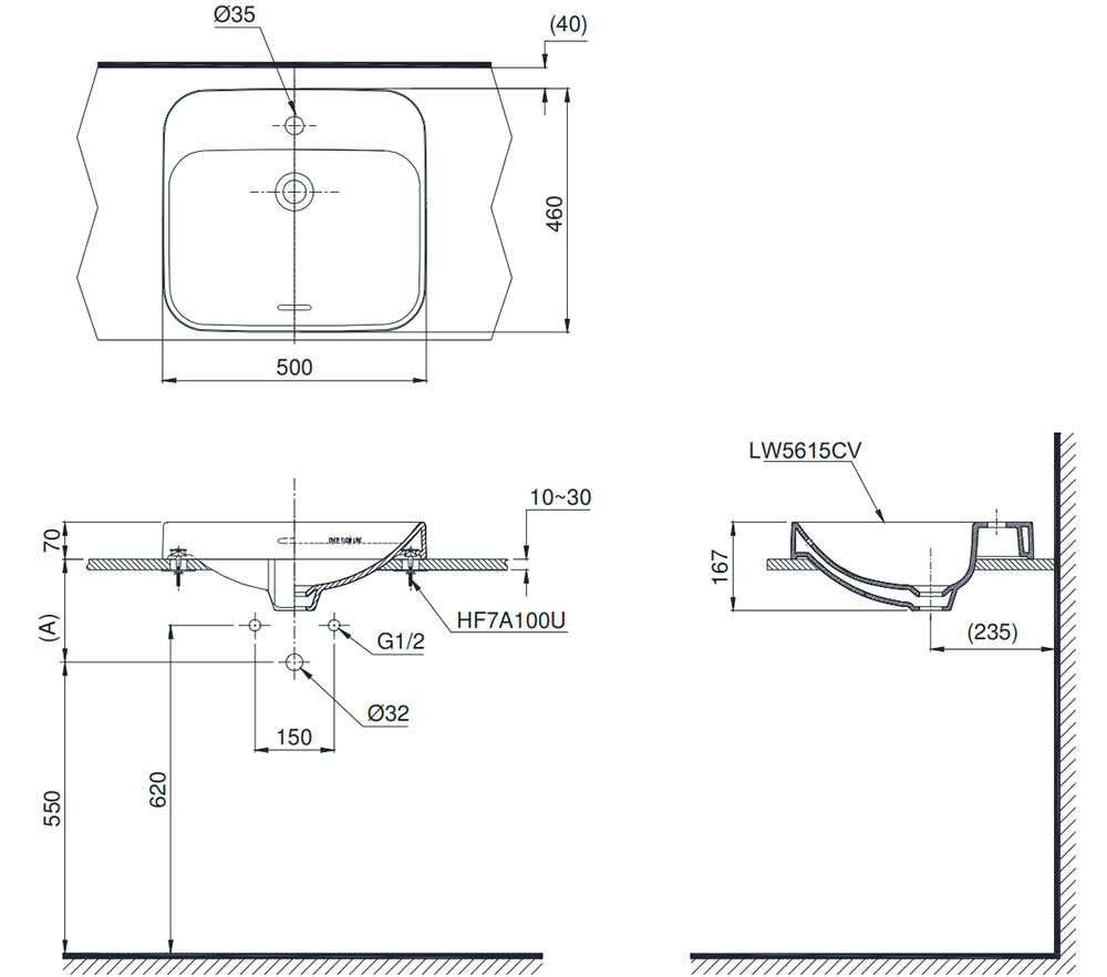 Bản vẽ kỹ thuật chậu lavabo TOTO LT5615C