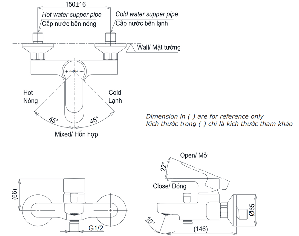 Bản vẽ kỹ thuật củ sen tắm nóng lạnh TOTO TBS06302V