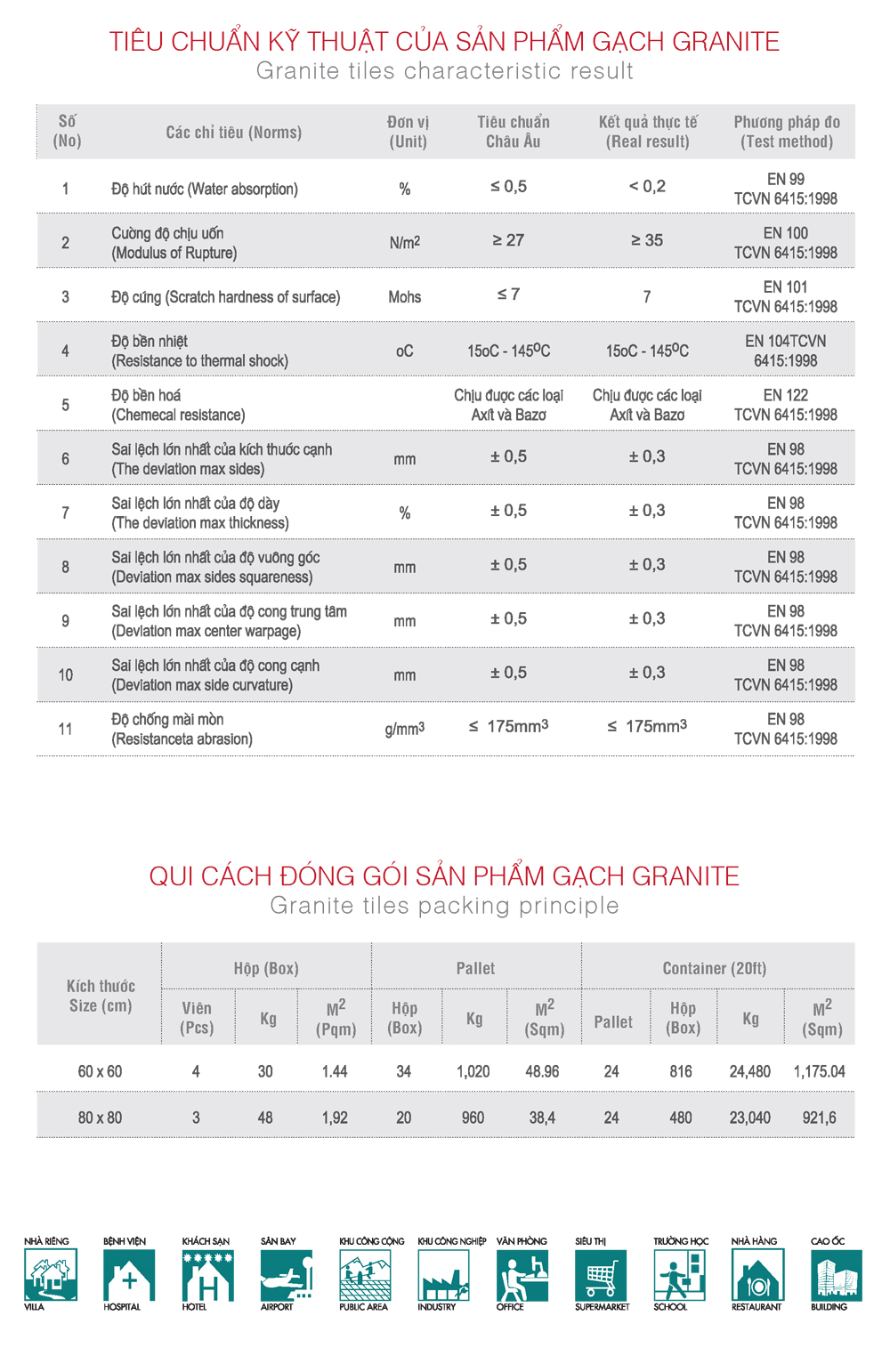 * Tiêu chuẩn kỹ thuật gạch Granite
