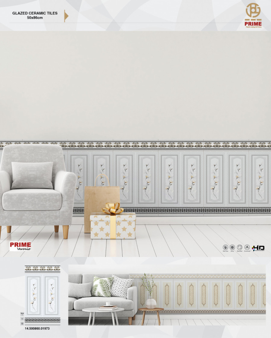 Gạch ốp tường Prime 14.500860.01973 chất lượng cao đạt các chứng chỉ quốc tế thuộc ngành công nghiệp ceramic, gạch Prime chống chịu tốt trước tác động của các điều kiện bên ngoài như thời tiết, ẩm mốc, phai mầu, dễ dàng lau chùi và vệ sinh...Gạch ốp tường 50x86 cm Prime được nhiều khách hàng và chủ đầu tư lựa chọn làm gạch ốp chân tường cho không gian phòng khách, nhà bếp, phòng ăn tại các công trình khách sạn, nhà hàng, biệt thự, khu nghỉ dưỡng, căn hộ cao cấp...
