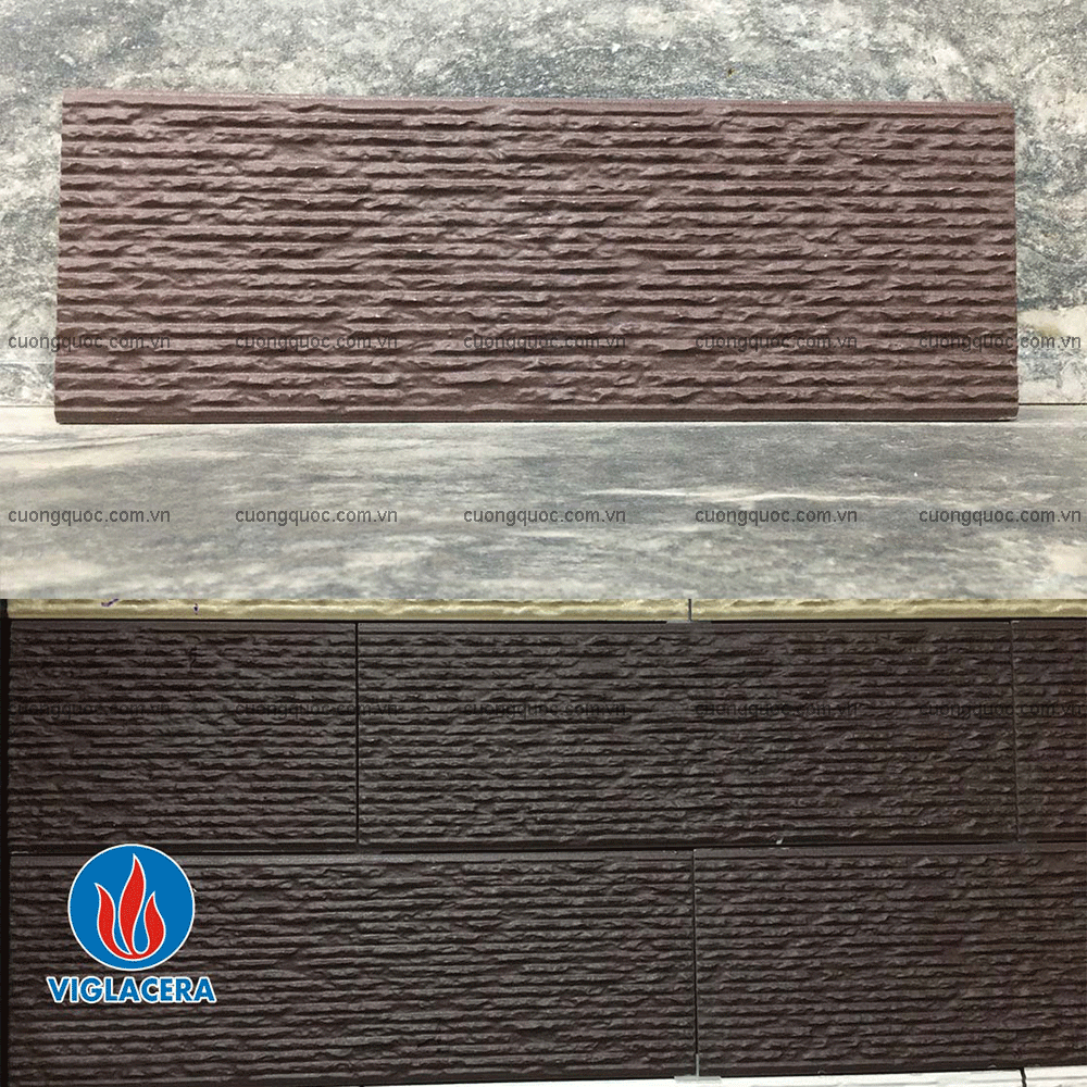 Gạch với tone màu nâu chocolate, cùng những đường vân gồ ghề thường được ứng dụng để ốp ban công, mặt tiền, ốp trang trí phòng ngủ, phòng khách... giúp tạo nên điểm nhấn cho các bức tường.