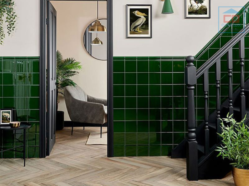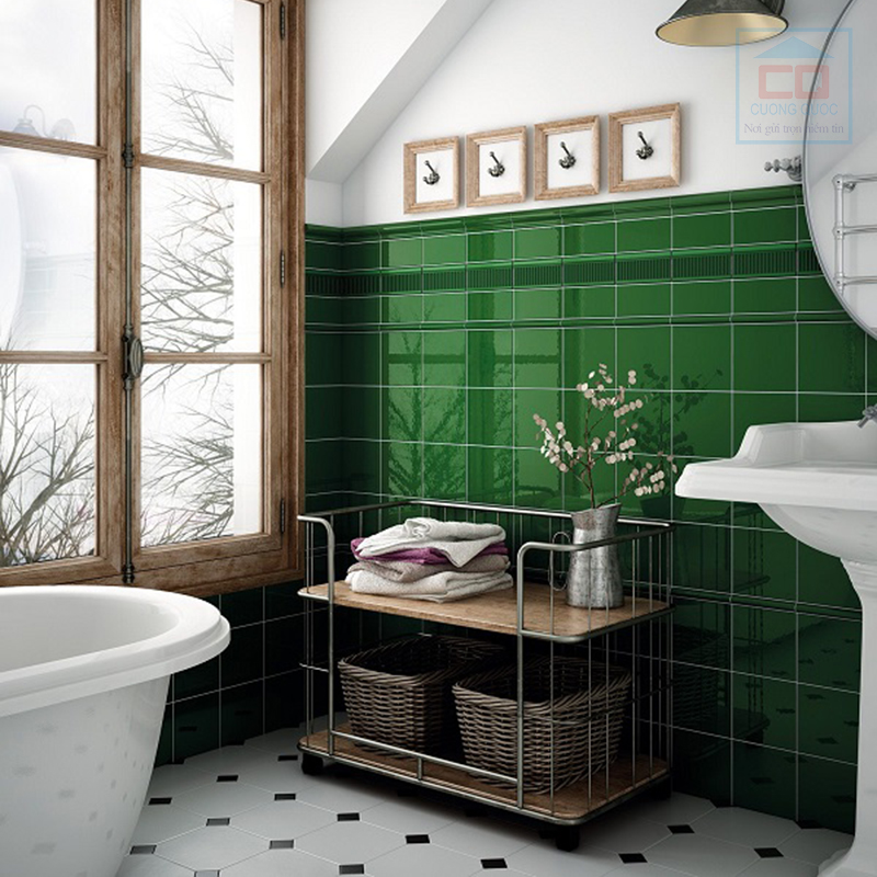 Phòng mẫu gạch thẻ 10x10cm M1112 xanh lục bóng phẳng