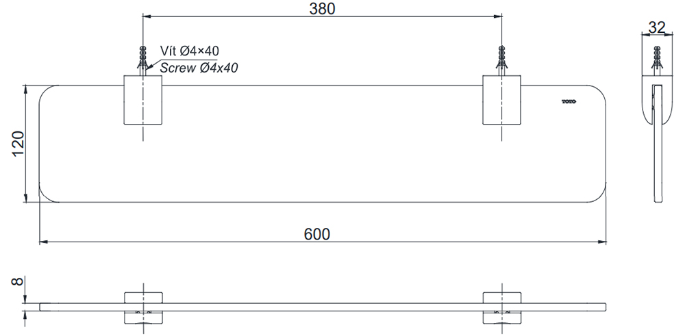 Bản vẽ kỹ thuật kệ gương TOTO YAK201GV