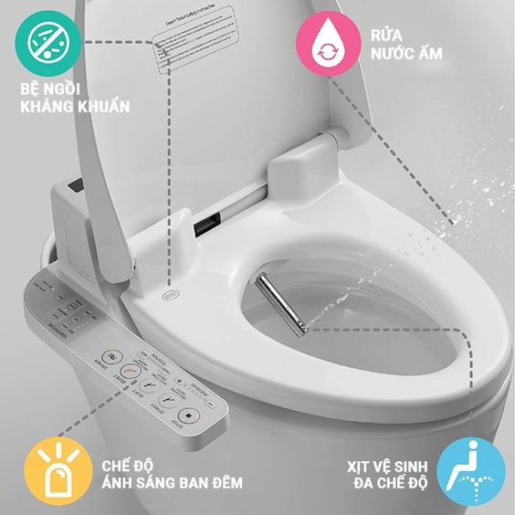 Nắp bồn cầu thông minh có vòi phun rửa đa chức năng, rửa trước dành riêng cho phụ nữ, rửa sau và rửa massage. Có thể điều chỉnh vị trí hoạt động của vòi phun (hay vòi rửa), áp lực và nhiệt độ nước, từ đó giúp vệ sinh dễ dàng, chính xác và sạch sẽ hơn.