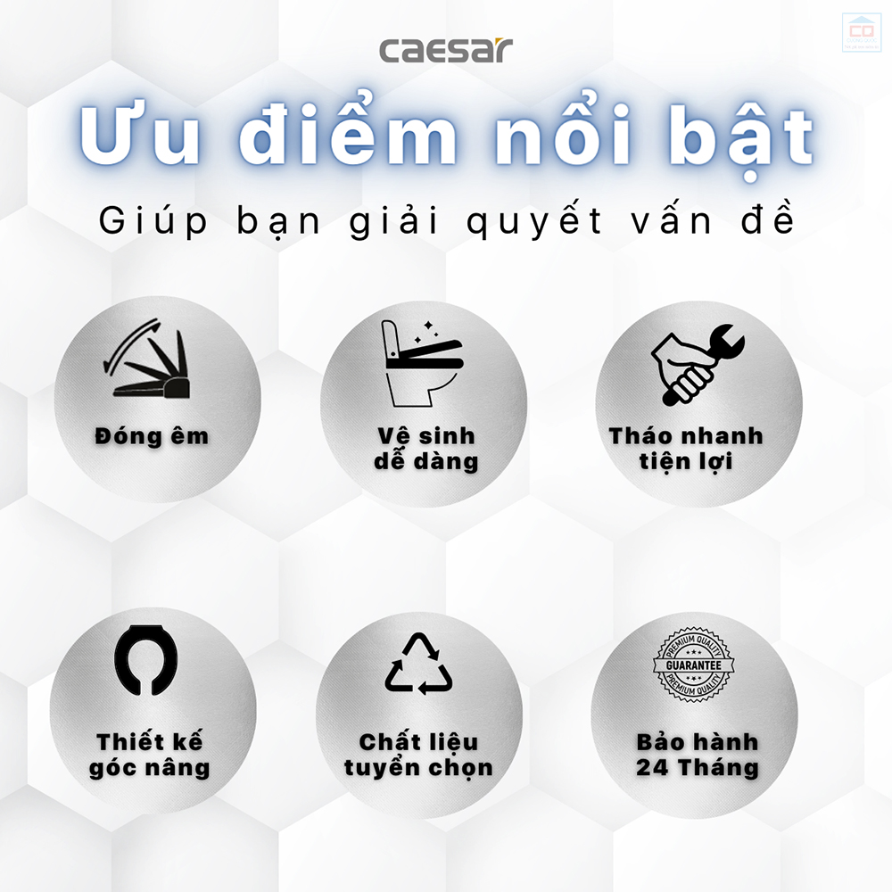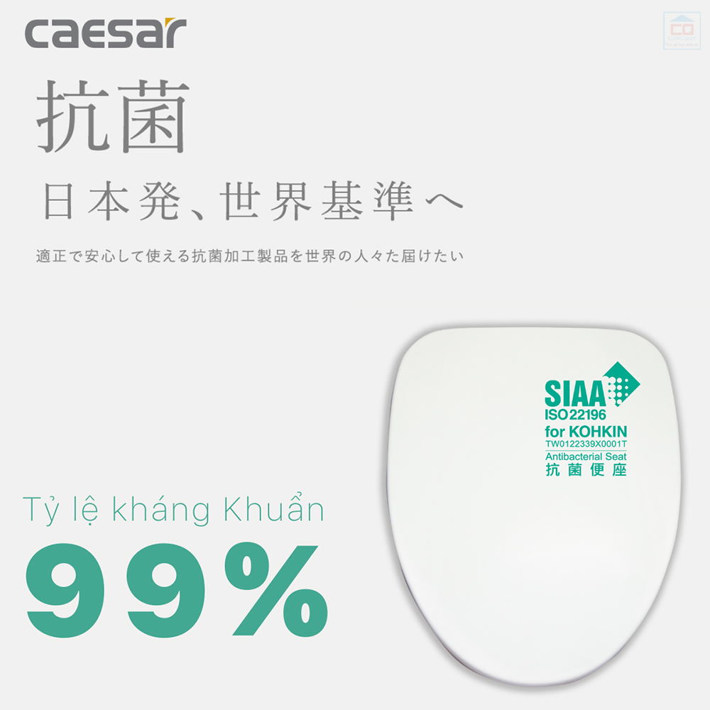 Một điểm cộng đáng chú ý khác của nắp bồn cầu Caesar này chính là cơ chế đóng êm. Sản phẩm được trang bị hệ thống bản lề đóng êm giúp nắp từ từ hạ xuống một cách nhẹ nhàng. Tính năng này không chỉ hạn chế tiếng ồn mà còn bảo vệ nắp và bệ sứ khỏi những va chạm mạnh, kéo dài tuổi thọ cho cả bộ bồn cầu.