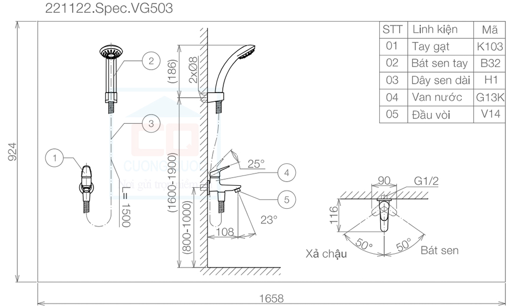 Sen tắm VG503 được thiết kế 1 dây bát sen tắm và 1 vòi xả, tiện lợi cho mọi mục đích dùng của khách hàng. Phù hợp cho những công trình công cộng.