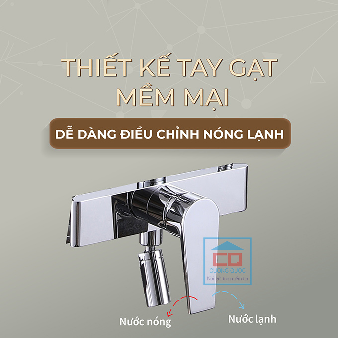 Tay gạt thiết kế tinh tế, dễ dàng điều chỉnh nhiệt độ nước nóng – lạnh một cách mượt mà.