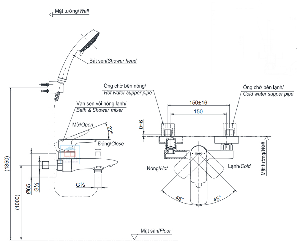 Bản vẽ kỹ thuật sen tắm TOTO TBG04302VA/DGH108ZR