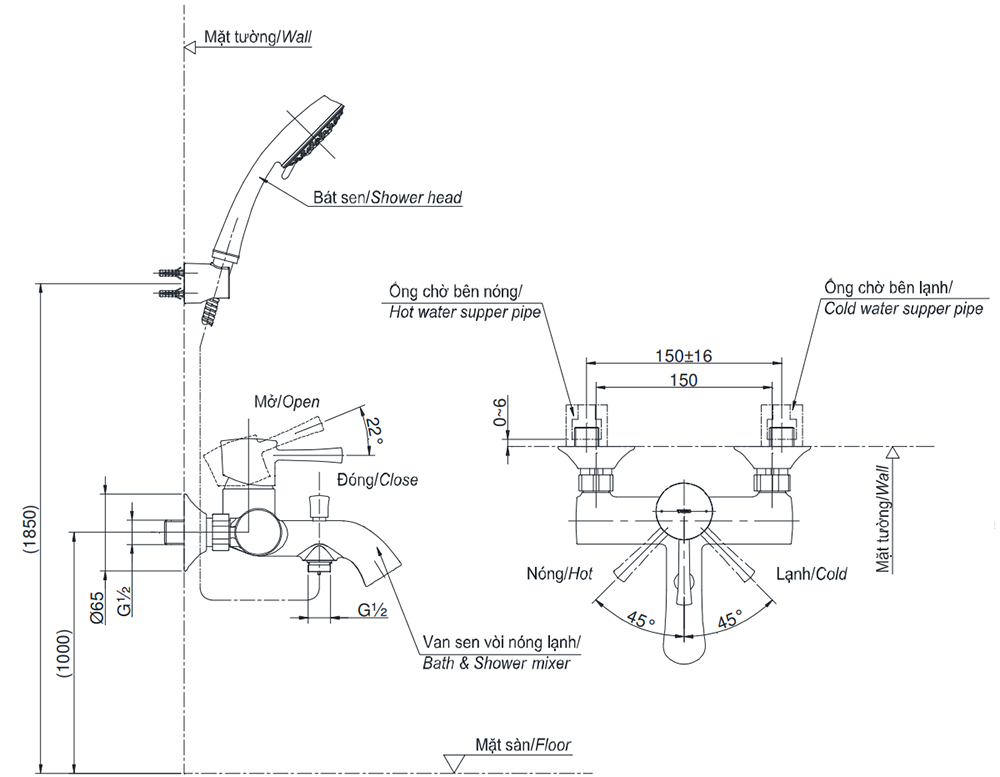 Bản vẽ kỹ thuật sen tắm nóng lạnh TOTO TBS02302V/DGH104ZR