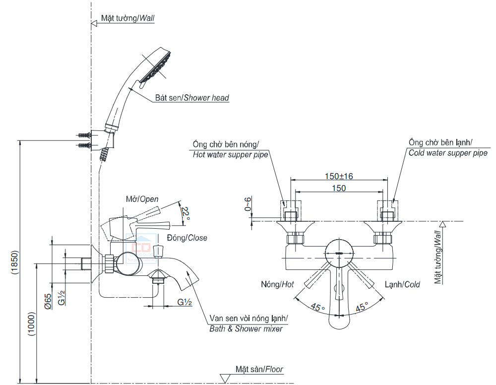 Bản vẽ kỹ thuật sen tắm TOTO TBS02302V/TBW01008A