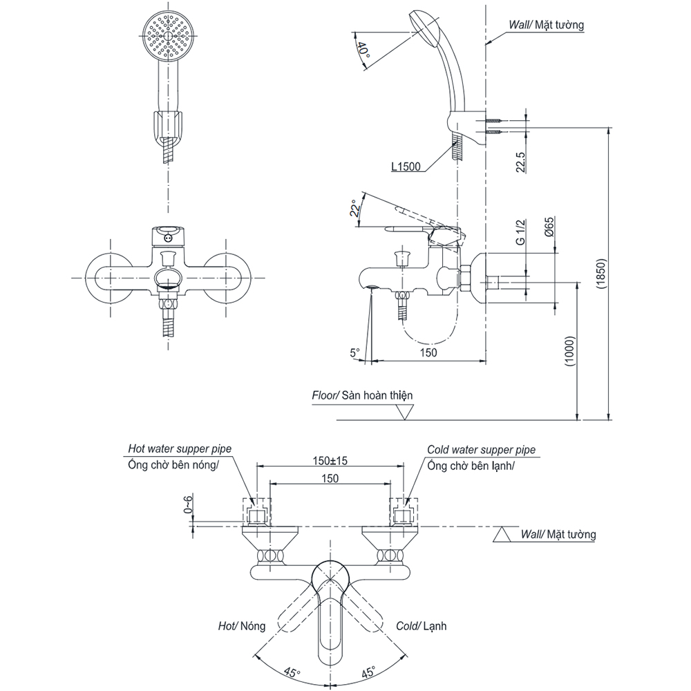 Bản vẽ kỹ thuật sen tắm nóng lạnh TOTO TVSM103NSS