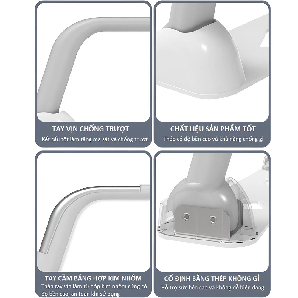 Sản phẩm được thiết kế chuyên biệt nhằm mục đích hỗ trợ tối đa quá trình đứng lên và ngồi xuống bồn cầu, giúp người dùng duy trì sự thăng bằng, giảm thiểu áp lực lên đầu gối và cơ bắp, từ đó hạn chế tối đa nguy cơ té ngã, đặc biệt trong môi trường ẩm ướt của nhà vệ sinh.