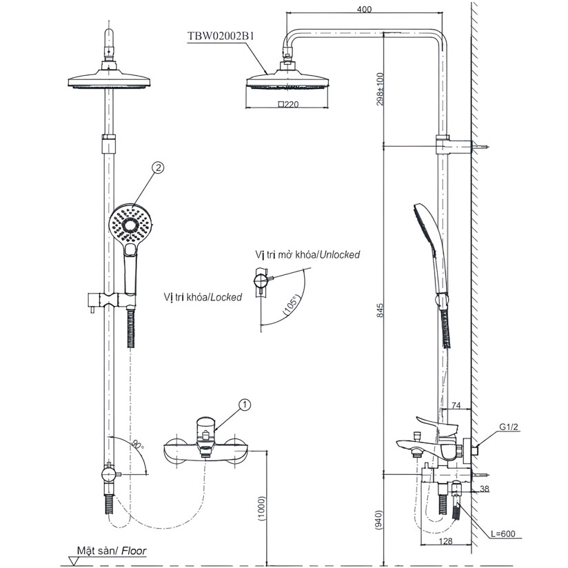 Bản vẽ kỹ thuật sen cây TOTO TBW02002BA