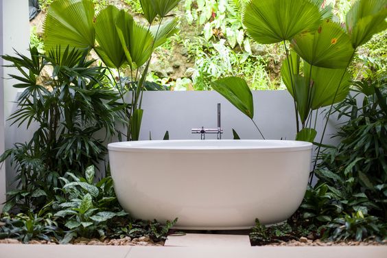 Phòng tắm không gian mở sau nhà