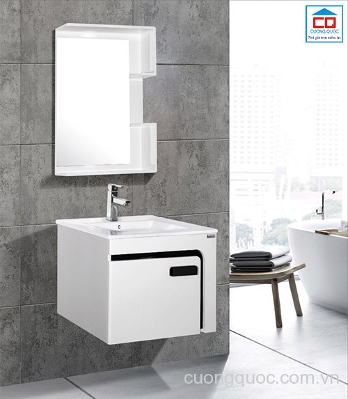 - Tủ chậu Bross BRS 2017 thiết kế nhỏ gọn, màu trắng điểm đen hiện đại.