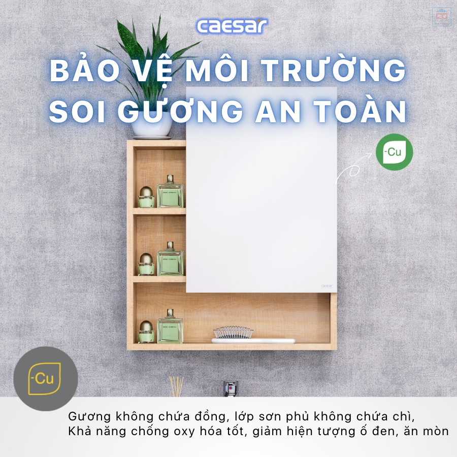 Phần gương của bộ tủ Caesar EM0160W7V được làm từ phôi cao cấp không chứa đồng giúp bề mặt có khả năng chống oxy hóa tốt, ngăn chặn tính trạng ăn mòn ở mép gương. Cùng với đó, lớp sơn phủ của gương không chứa chì không chỉ giúp bảo vệ sức khỏe người dùng, mà còn giúp hình ảnh phản chiếu chân thực và sắc nét.